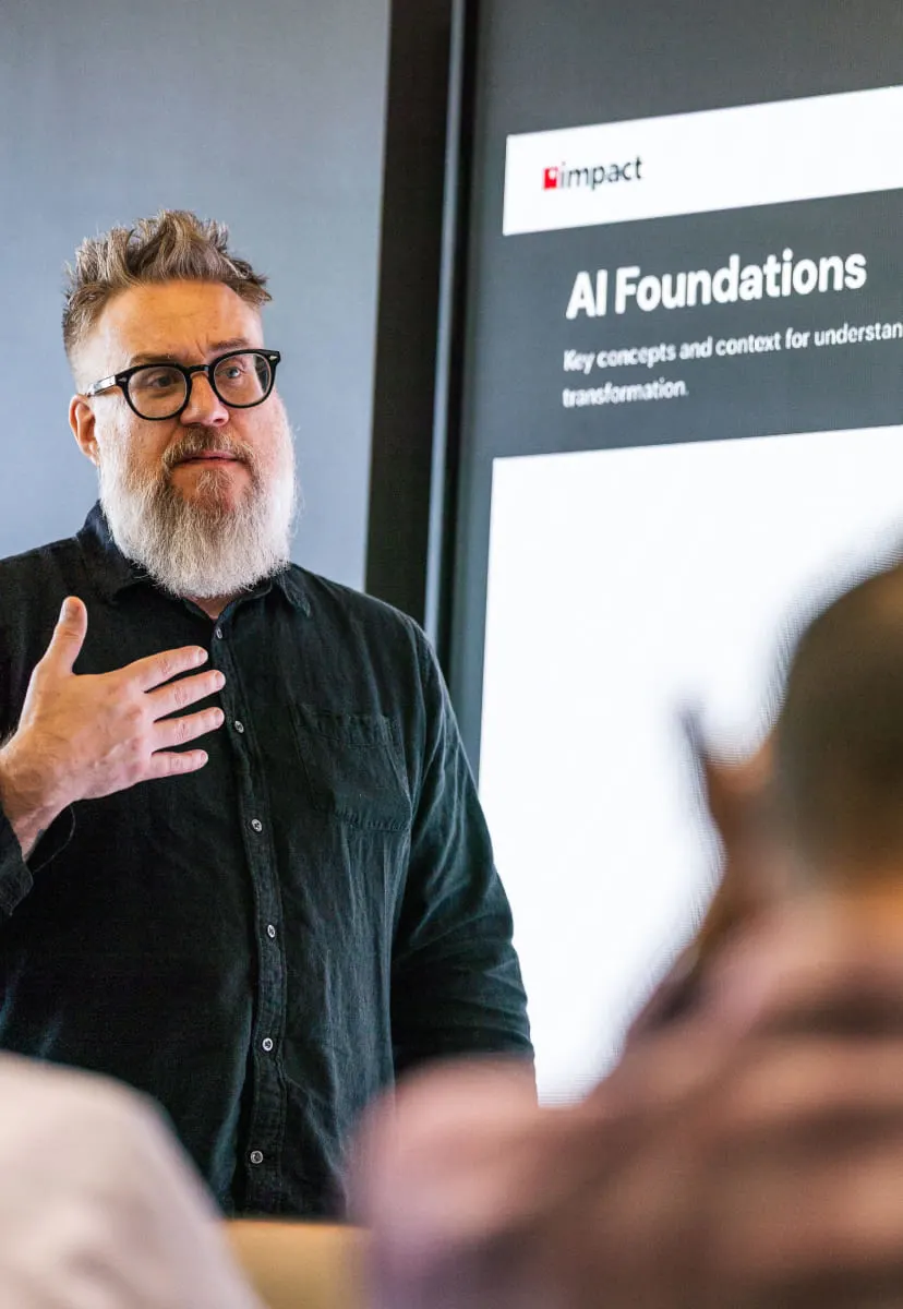 Choosing Impact means working with dedicated experts who were studying and implementing AI long before it became a trend. Our team brings decades of experience and a deep understanding of how organizations actually work and how transformations succeed. We don’t just teach AI. We translate it into practical tools and measurable outcomes tailored to your business.